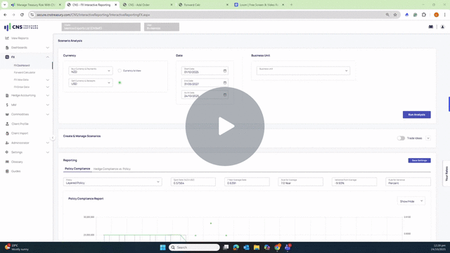 This article shows CNS users how to use market data, the FX Dashboard, and scenario analysis to decide when to add hedges, test compliance impacts, and prepare trades for execution.